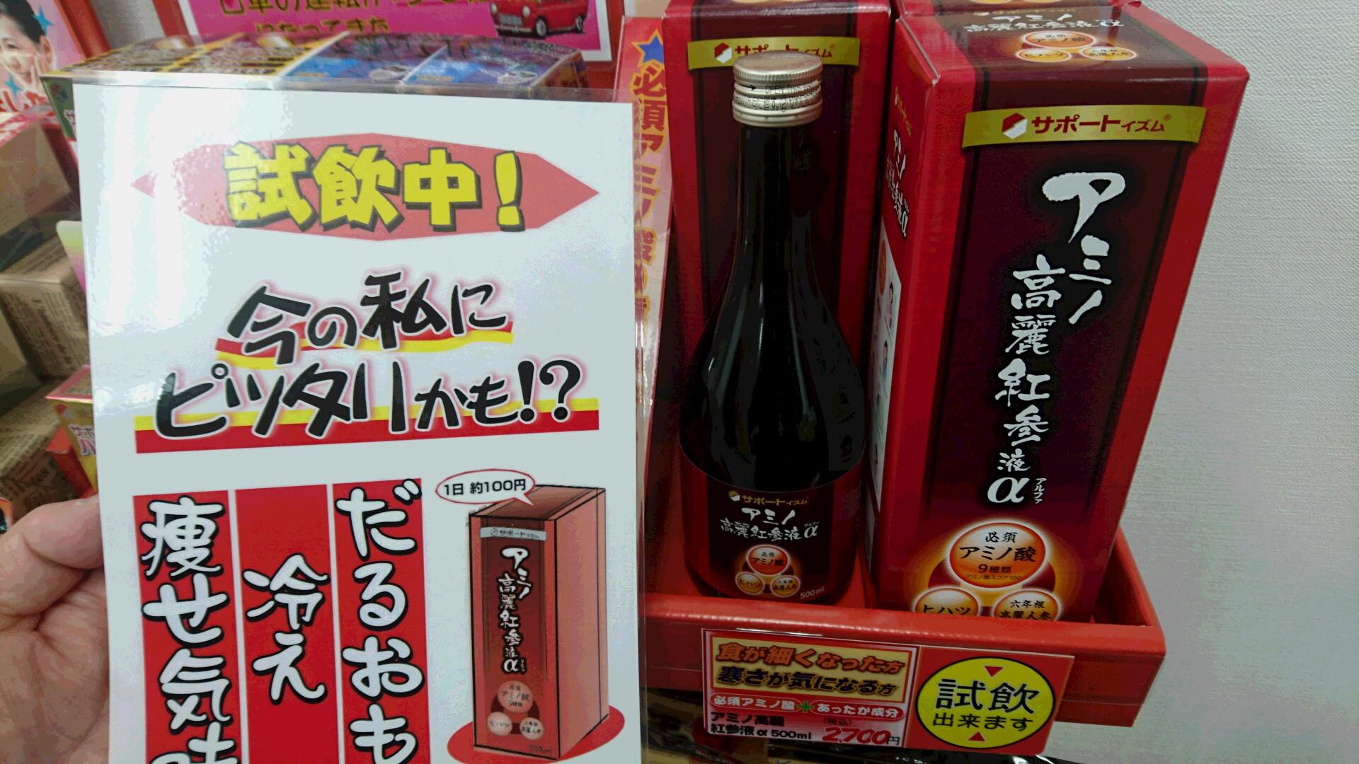当商品は発売して2年になりますが、「必須アミノ酸+高麗紅参6年根+あったた成分・ヒハツ」を配合。アミノ酸特有の飲みにくさを解消して、飲みやすく続けやすい味に仕上がっています(お値段も1日約100円とお値打ちになっています)。